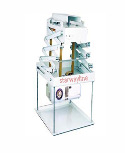 Provides cable track system for hide, protect and gather cables when the projector lift is going up and down. Special kind of projector mount clamps with spring tension, developed for easy mounting and projection calibration.