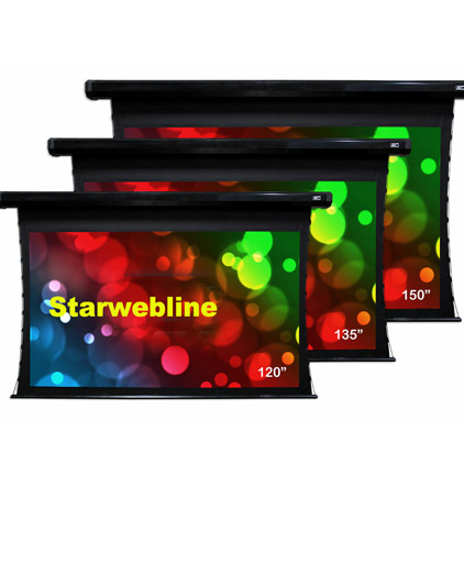 The Spectrum Tab-Tension is part of Starwebline of electric projection screens. It’s tab-tension reinforced CineWhite. UHD-B material provides enhanced material flatness. This feature allows ultra/short throw projectors to reflect a flat ripple-free image. UHD-B projection material is ISF certified for superior color reproduction with no color shift.